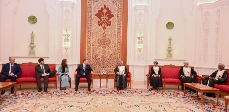 وكان معالي السيد بدر بن حمد البوسعيدي وزير الخارجية في مقدمة مستقبلي دولة الضيف والوفد المرافق له لدى وصولهم المطار السلطاني الخاص، حيث رحّب معاليه بدولة الضيف متمنياً له زيارة موفقة وإقامة طيبة.