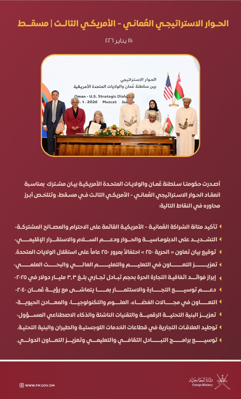 البيان المشترك بمناسبة انعقاد الحوار الاستراتيجي العماني الأمريكي الثالث في مسقط